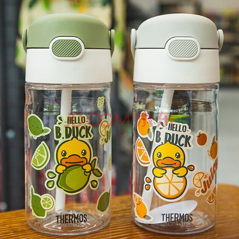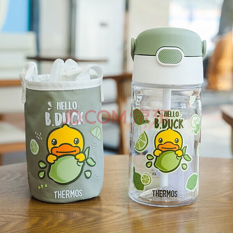 商品相册:膳魔师(THERMOS)塑料杯tritan材质成人儿童学生吸管水杯子小黄鸭联名款 绿色420ml第