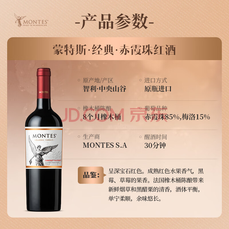 商品相册:MONTES蒙特斯经典赤霞珠红酒葡萄酒750ml*6整箱商务宴请智利原瓶进口第
