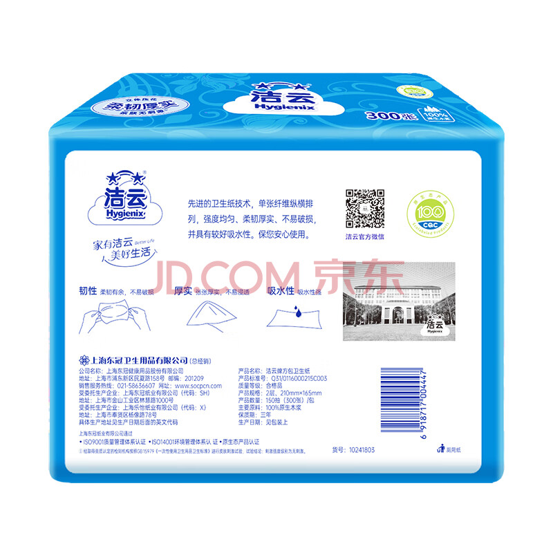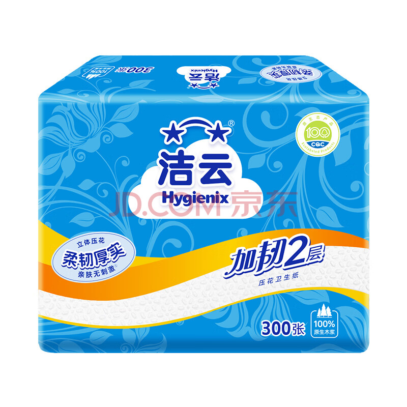 商品相册:洁云卫生纸 加韧300张*10包 大规格压花抽纸厕纸平板纸厕所专用纸巾 第1张/共4