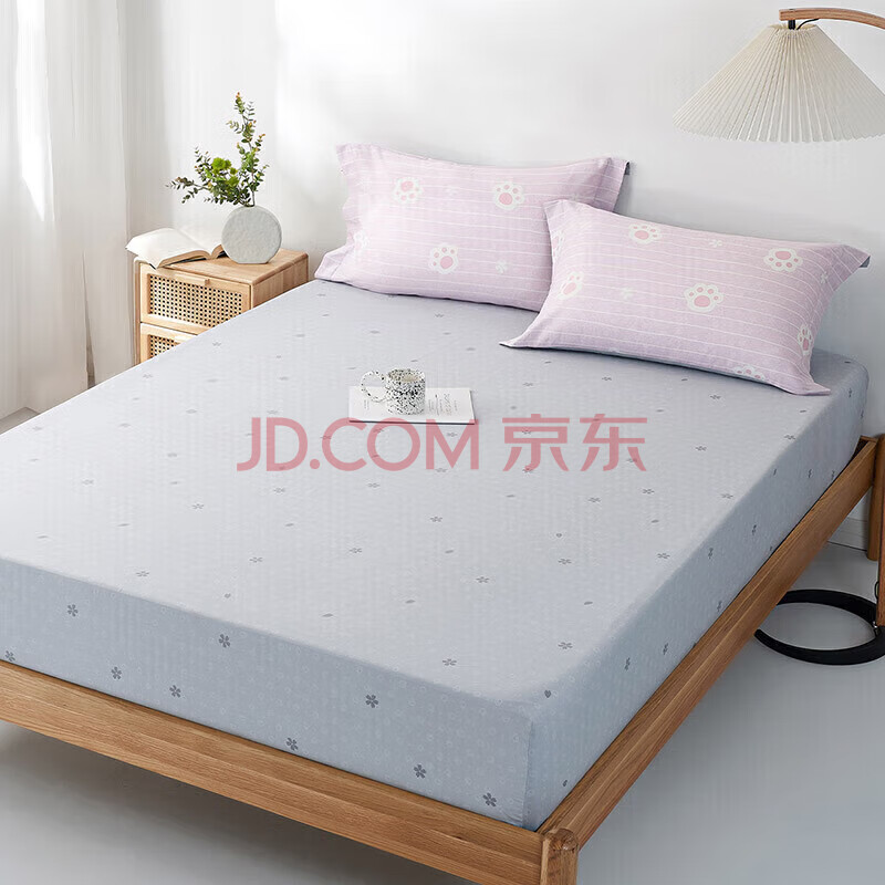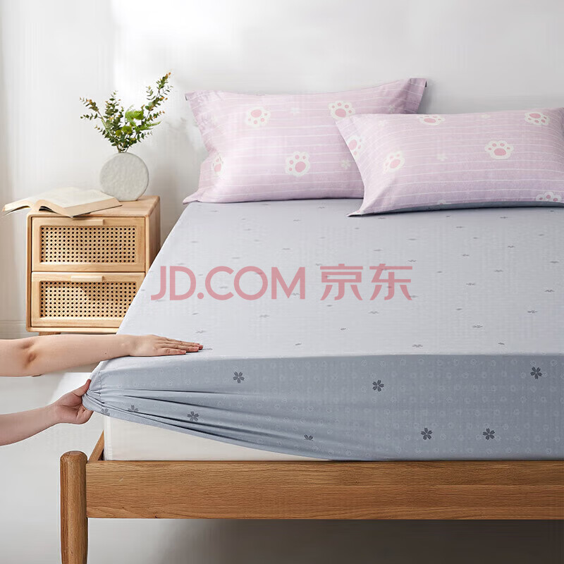 商品相册:罗莱家纺 纯棉床笠单件床罩床盖 樱花猫爪 灰色1.5米床150*200第