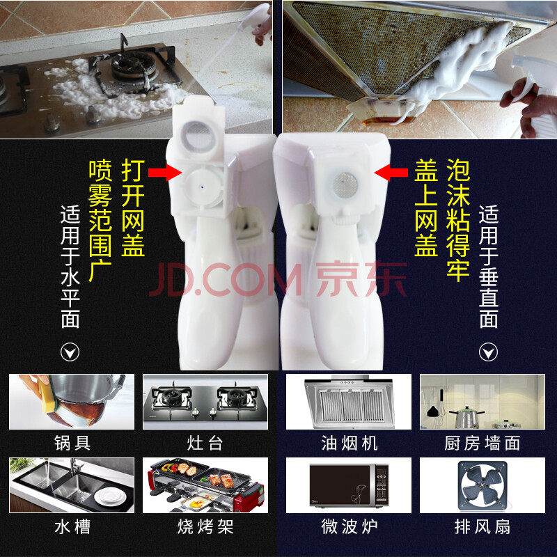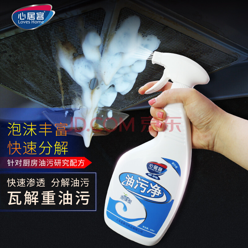 商品相册:心居客泡沫油污净厨房重油污去除油烟机清洗剂瓷砖去油渍500ml*2瓶第