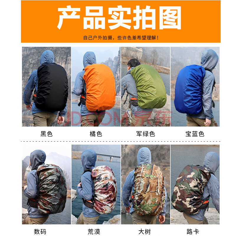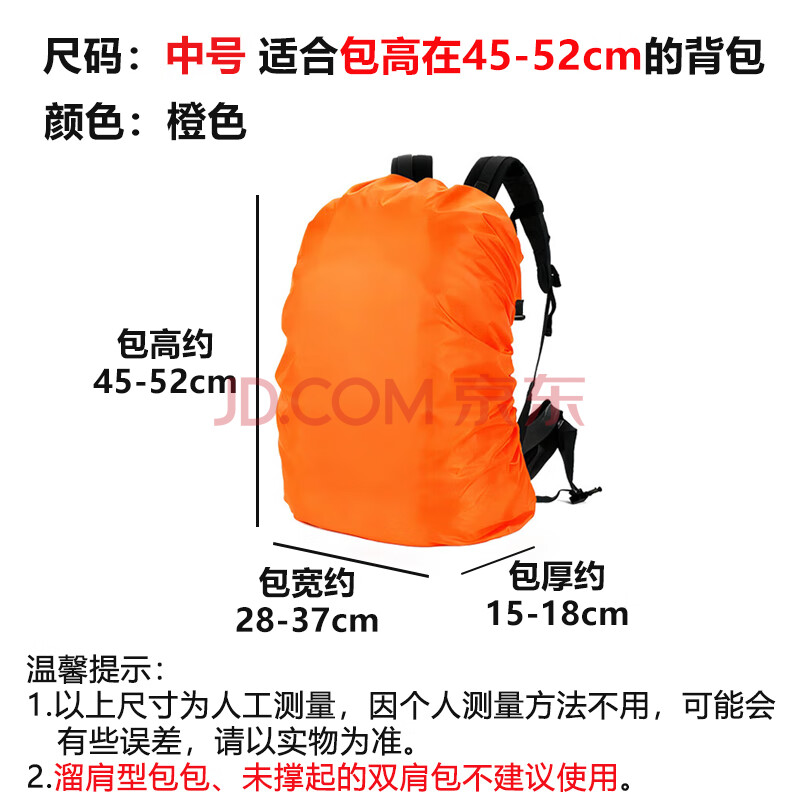 商品相册:欣沁背包防雨罩户外旅行背包防水套中小学生书包防雨防尘罩30-40L桔色第