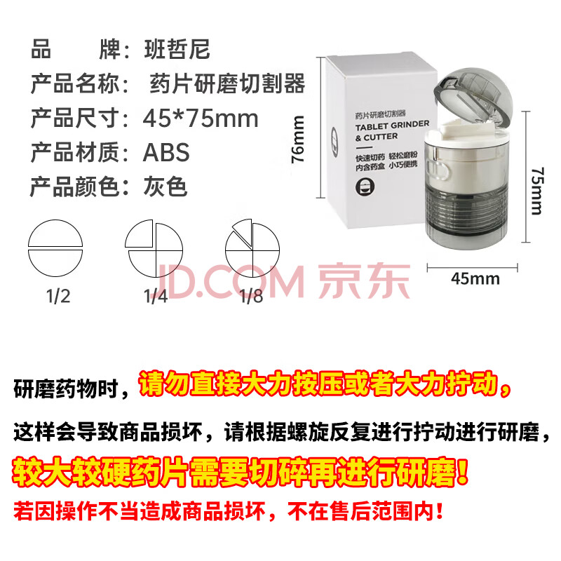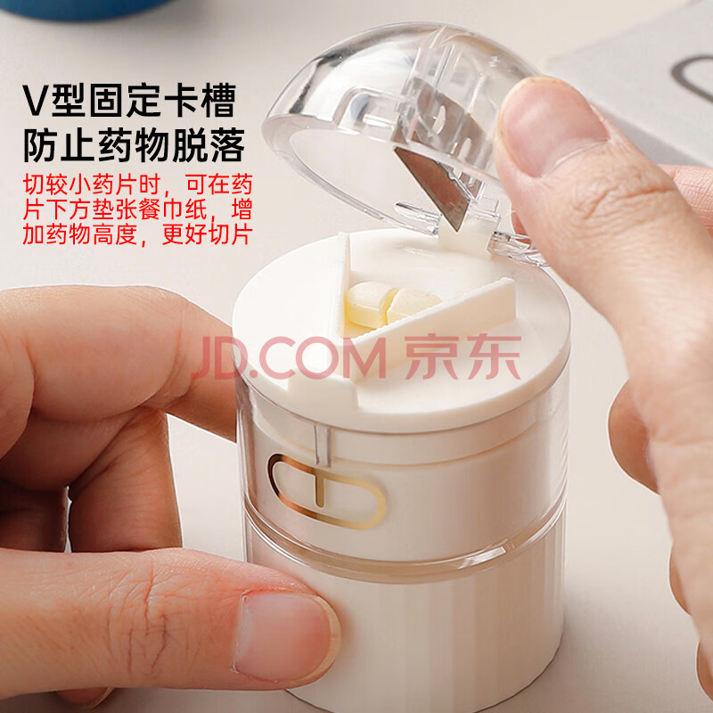 商品相册:班哲尼切药器药片盒四分之一分二精准分药器便携迷你分药盒七天收纳盒第
