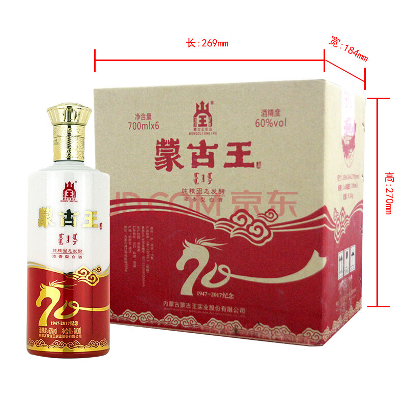 商品相册:蒙古王 白酒 浓香型粮食酒 高度白酒礼盒整箱桶装 60度草原献礼700ml*6第