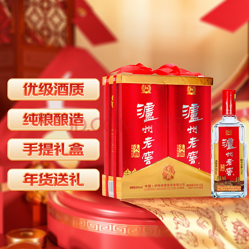 商品相册:泸州老窖淡雅头曲礼盒 浓香型白酒 52度475ml*2瓶 节日送礼盒第