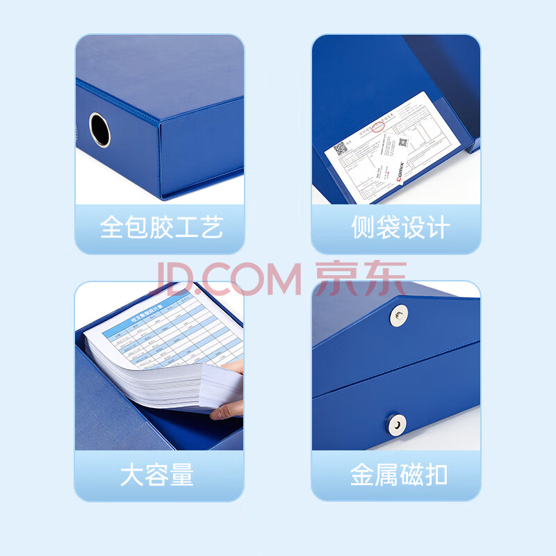 商品相册:齐心(COMIX)68mmA4磁扣式文件盒 加厚pvc档案盒55mm容纸量资料盒财务票据收纳 蓝色A8105第