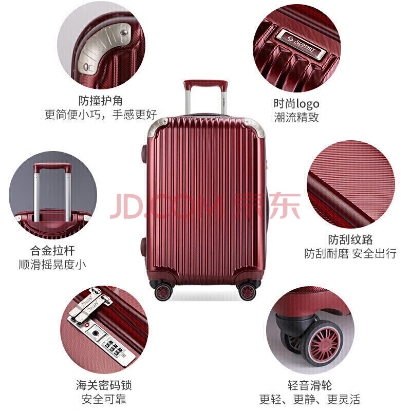 商品相册:莎米特行李箱小型大容量拉杆箱女时尚可登机旅行箱20英寸PC338T4 酒红第