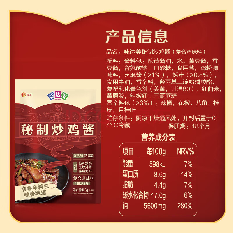 商品相册:味达美秘制炒鸡酱 100g*2袋 黄焖鸡调味料 火锅调料 大盘鸡 欣和出品第