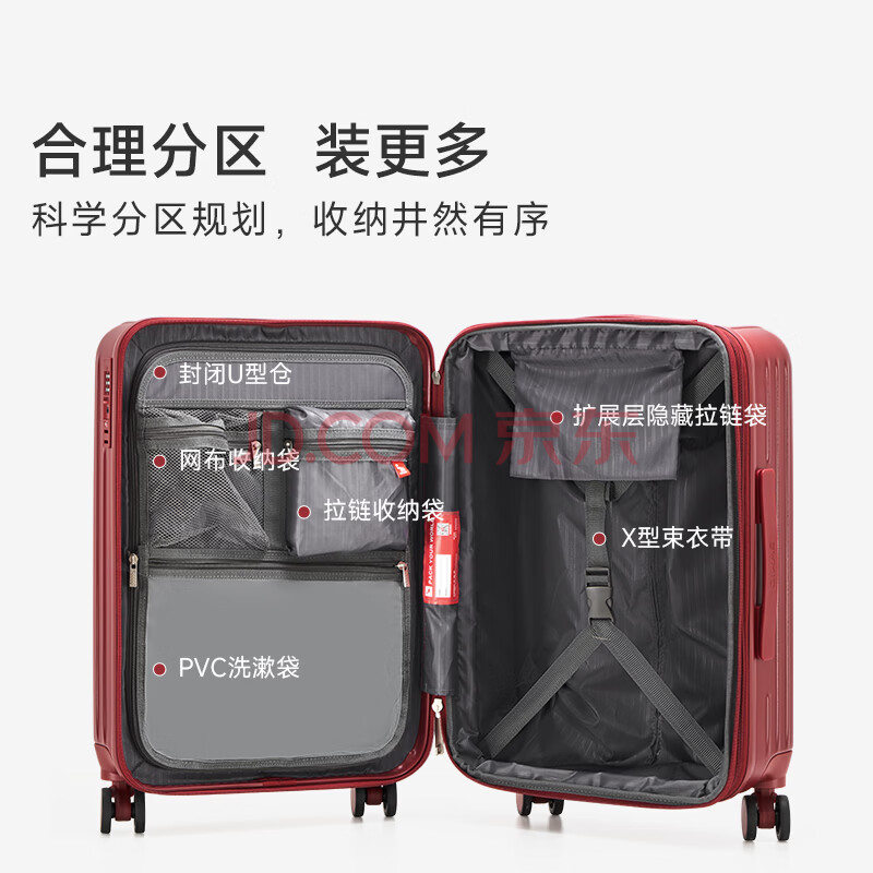 商品相册:爱华仕行李箱24英寸拉杆箱女大容量陪嫁旅行箱男密码箱多功能皮箱中国红第