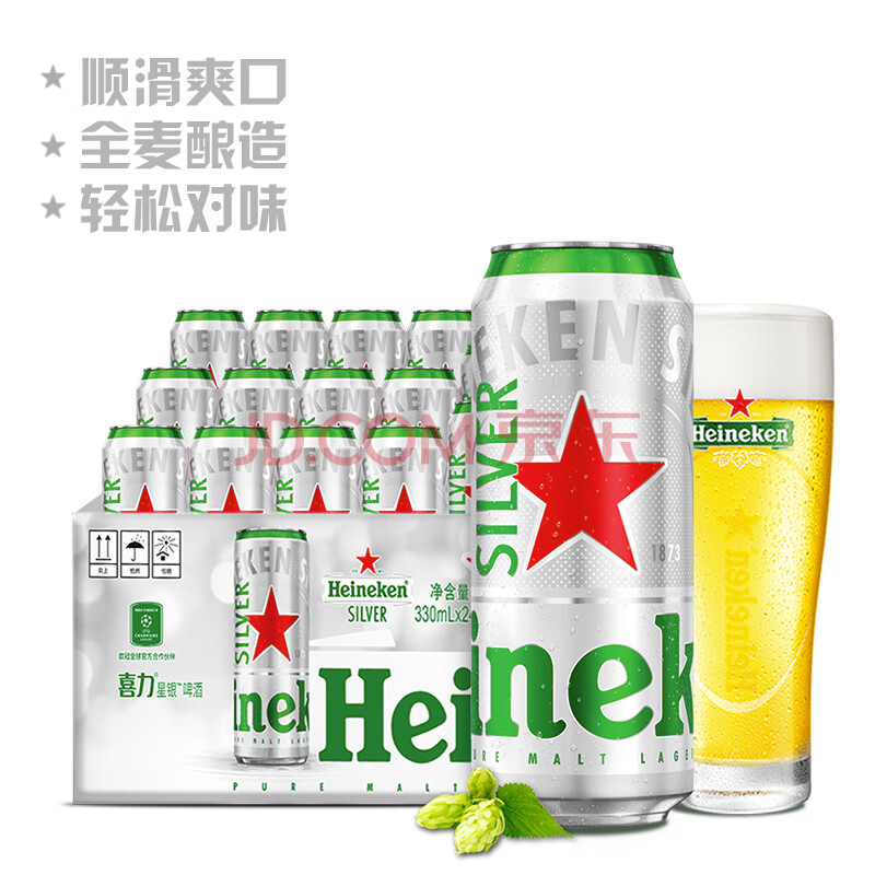 商品相册:喜力星银330ml*24听整箱装 喜力啤酒Heineken Silver 婚礼用酒第