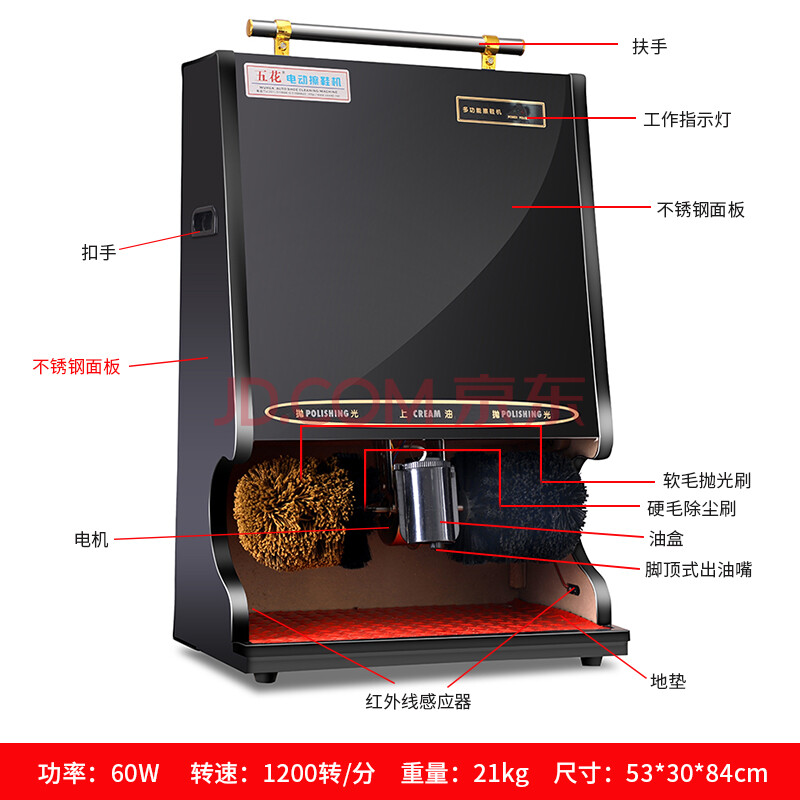 商品相册:五花 YK-D529 电动擦鞋机全自动感应智能擦鞋器酒店商用多功能刷皮鞋第