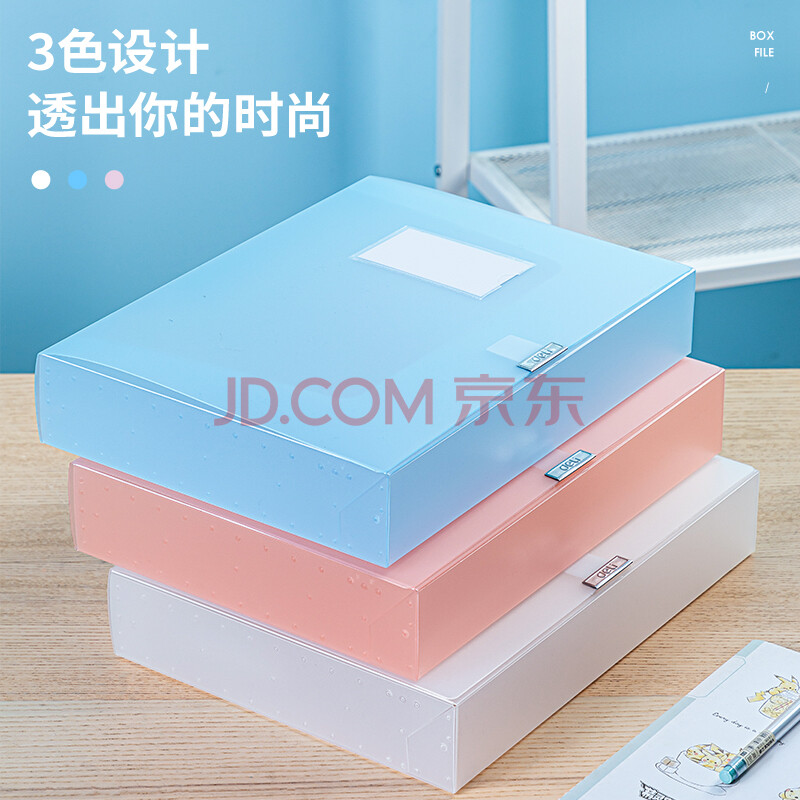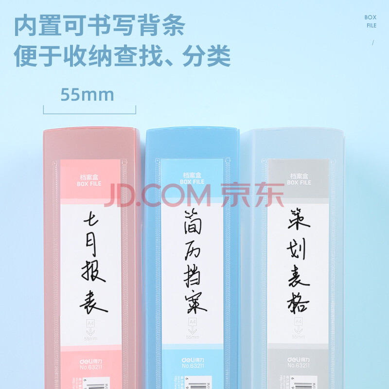 商品相册:得力(deli)63211 时尚简约彩透系列A4文件盒档案盒 办公考试资料票据收纳盒 财务凭证整理盒55mm 红色 12个装第