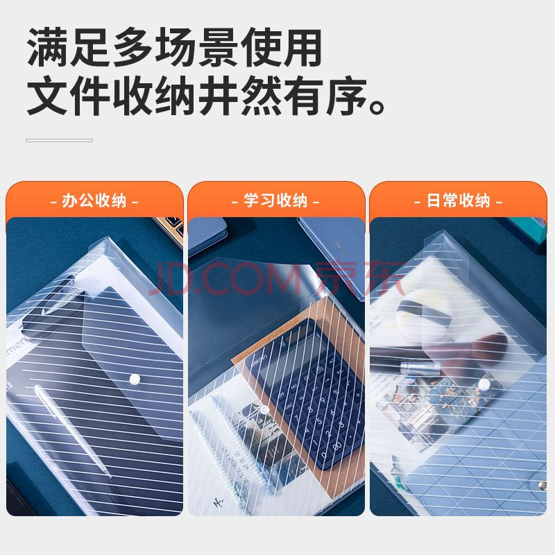 商品相册:得力(deli)5501 A4透明文件袋 按扣斜条资料袋 防水档案袋公文袋 财务票据学生办公收纳 蓝色 10只装第