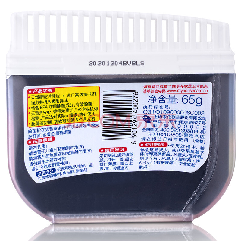 商品相册:家安(HomeAegis)天然椰壳冰箱祛味剂65g*3盒(活性炭吸味 除菌防串味 持久5个月)第