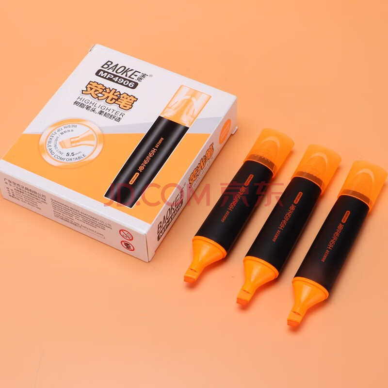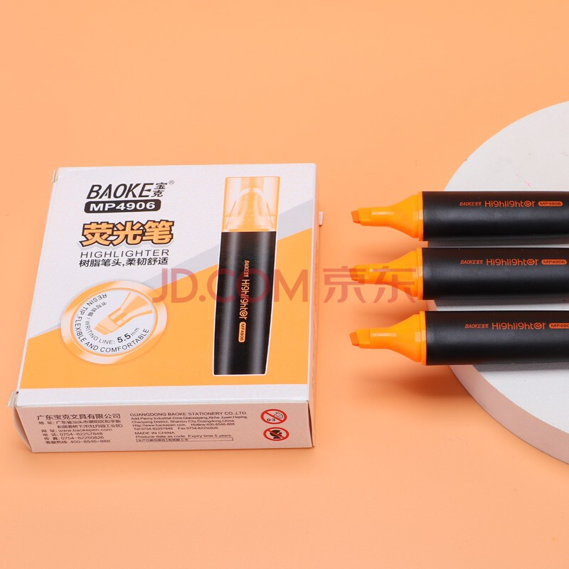 商品相册:宝克(BAOKE) BAOKE MP4906 荧光笔重点标记笔水性记号笔学生办公用 橙色 10支/盒第