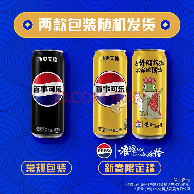 商品相册:百事可乐Pepsi 无糖 碳酸饮料汽水 330ml*12听 细长罐整箱装(包装随机)第