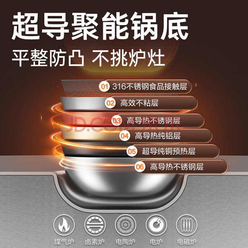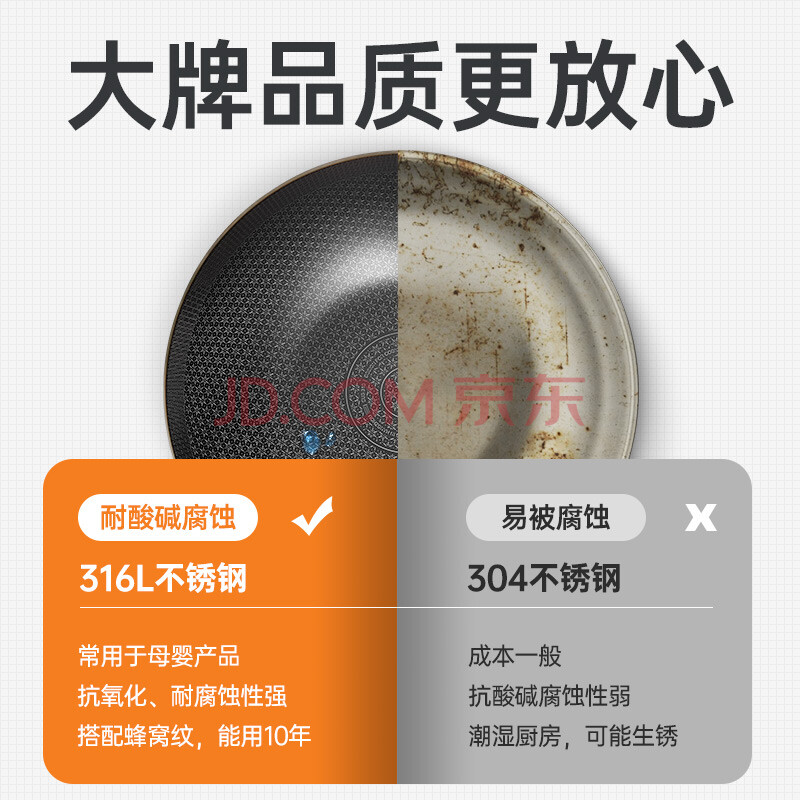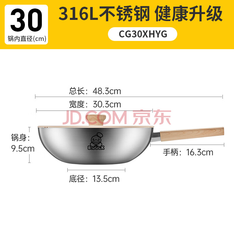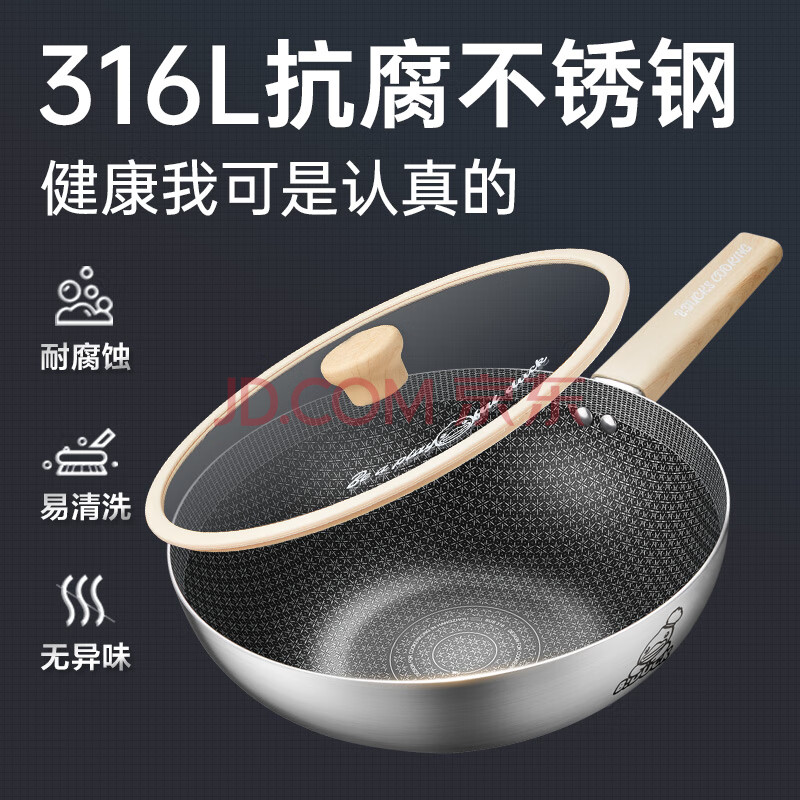 商品相册:炊大皇316不锈钢炒菜锅30cm 不粘平底炒锅 燃气煤气灶电磁炉通用第