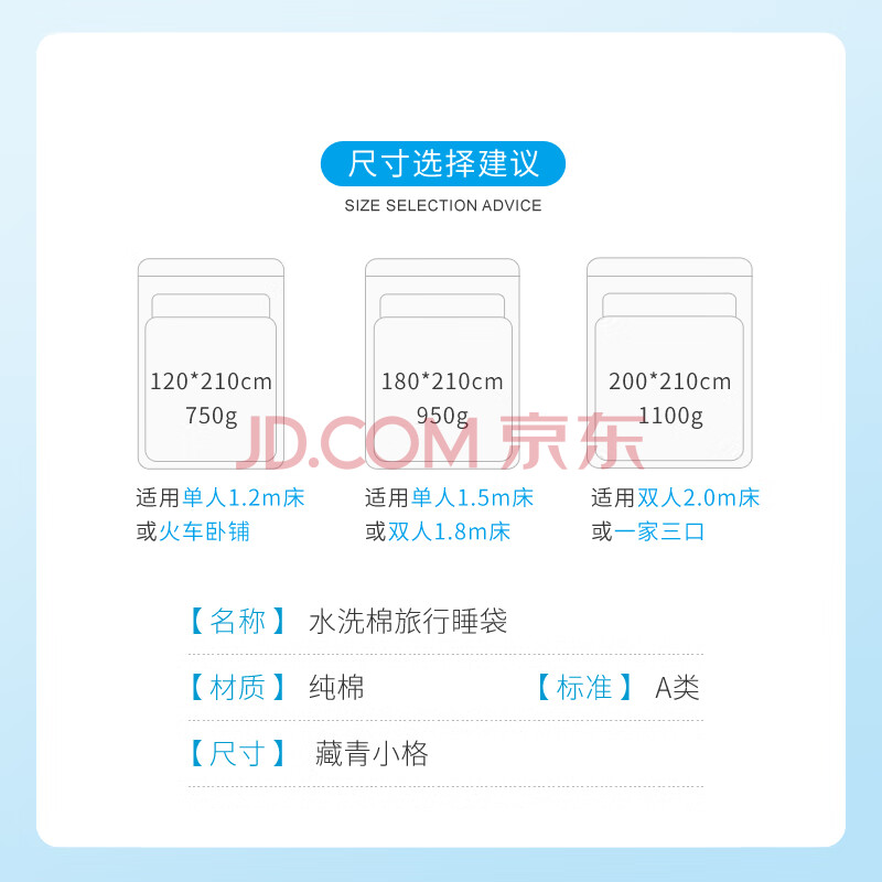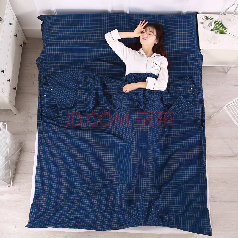 商品相册:欣沁睡袋隔脏旅行隔脏纯棉床单酒店便携式防脏床罩1.8*2.1m 藏青小格第