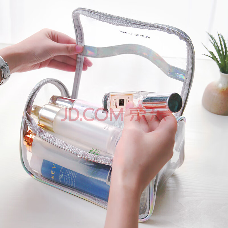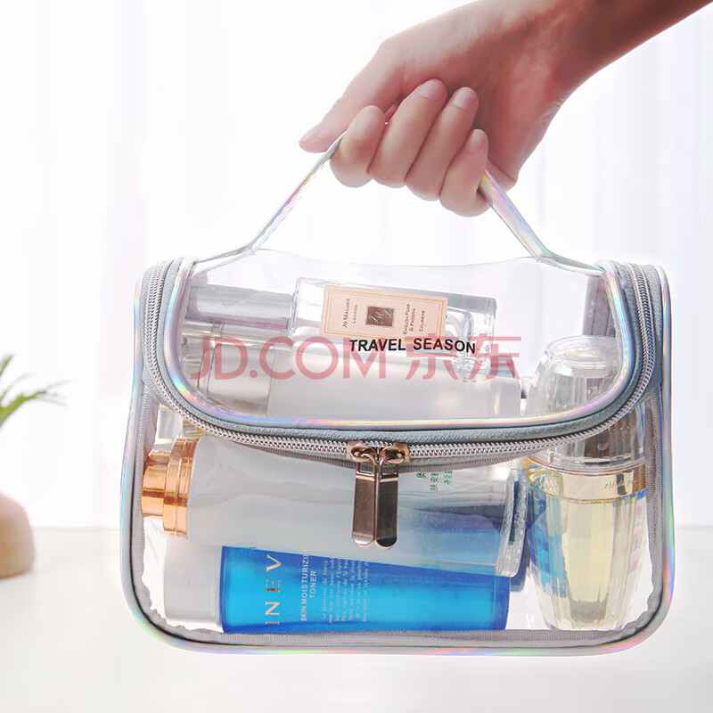 商品相册:欣沁洗漱包透明PVC化妆包便携手提大容量收纳包防泼水洗漱用品袋 枕型第
