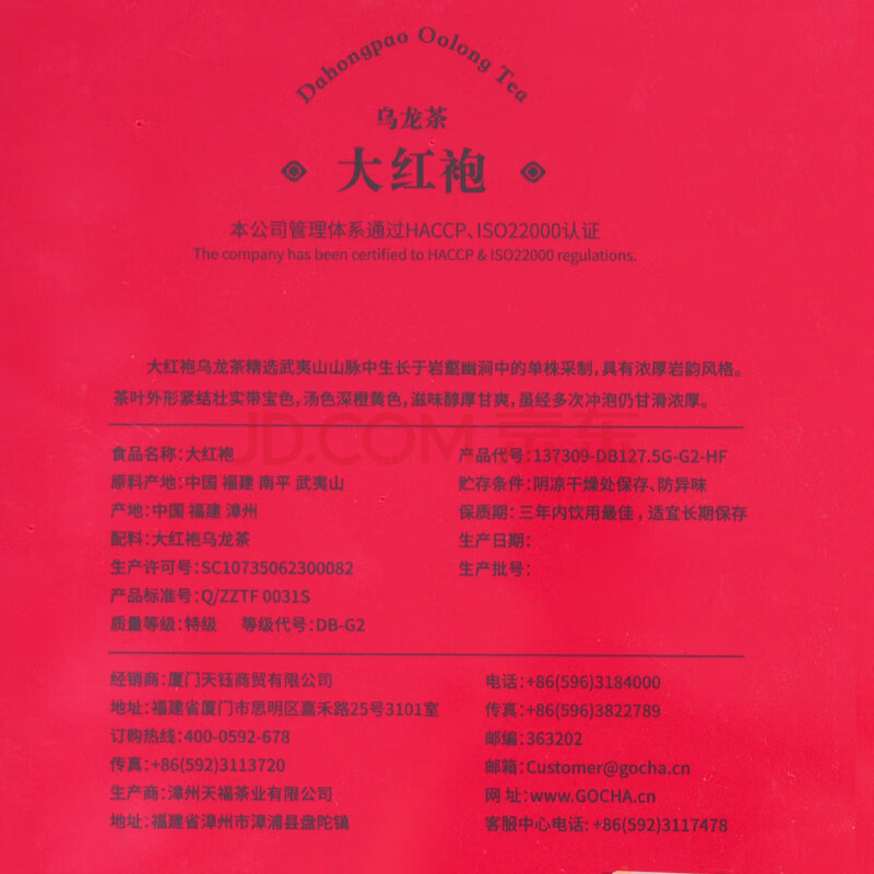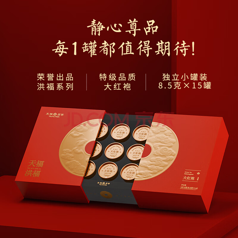 商品相册:天福茗茶乌龙茶 洪福大红袍福建武夷岩茶特级127.5g茶叶礼盒装送礼第