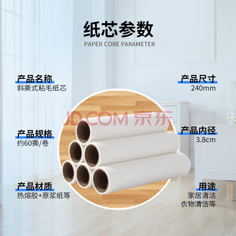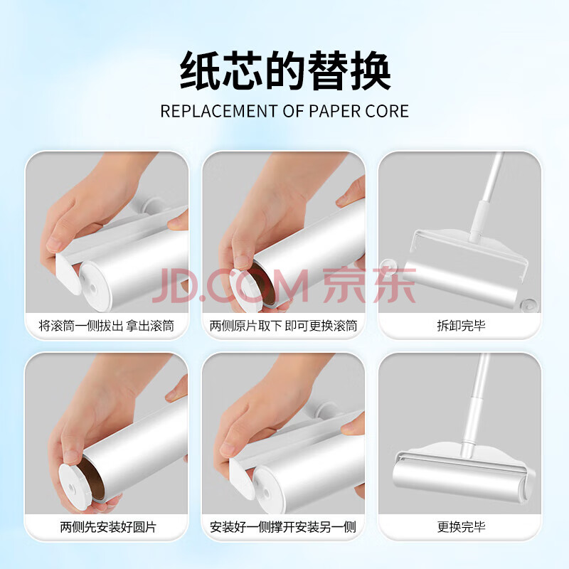 商品相册:LYNN通用型粘毛器替换纸24cm6卷360撕滚筒沾毛滚纸芯卷纸猫毛神器第