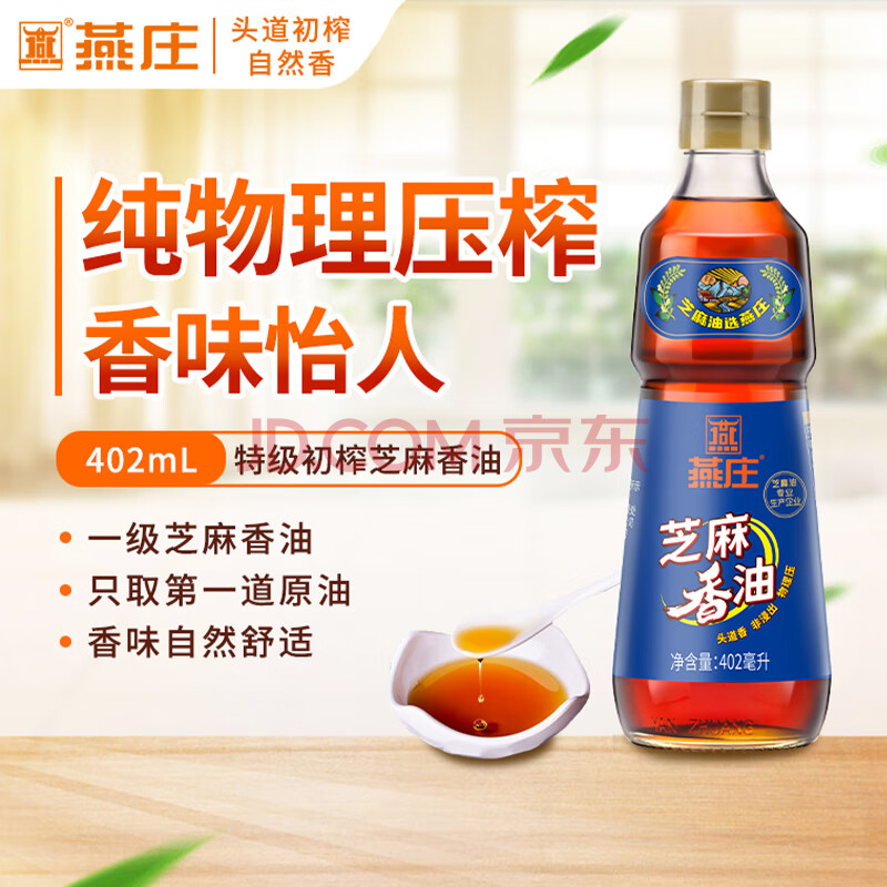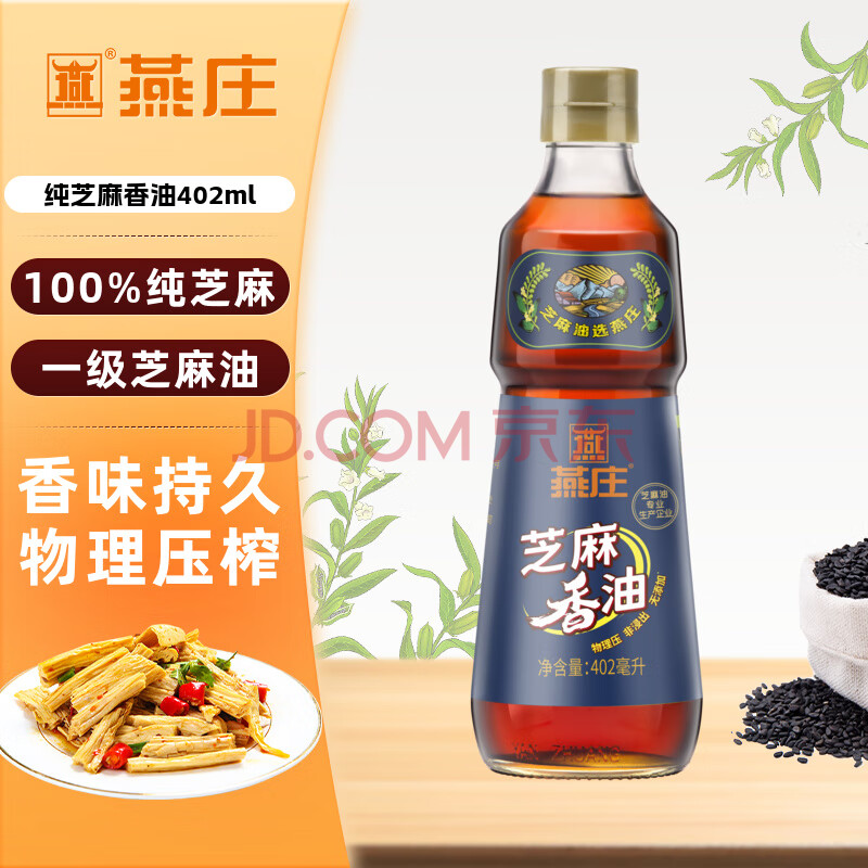 商品相册:燕庄 香油402ml【一级】100%纯芝麻油 凉拌火锅油碟调味第