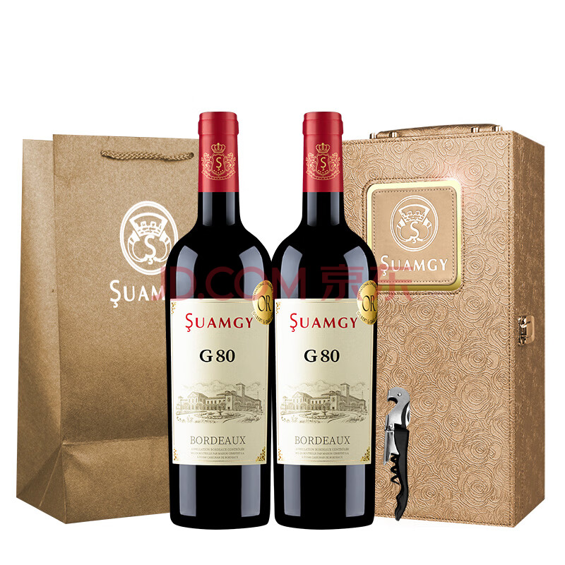 商品相册:圣芝(suamgy)G80波尔多AOC赤霞珠干红葡萄酒750ml*2支礼盒送礼 法国进口红酒第