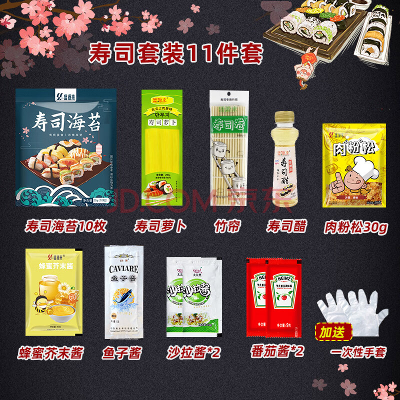 商品相册:盛源来 寿司食材工具11件竹帘海苔酱油醋肉粉紫菜包饭春游亲子DIY第