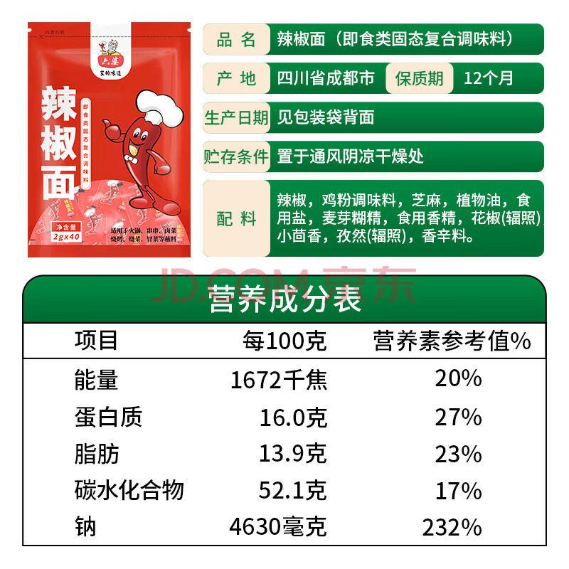 商品相册:六婆辣椒面2g*40袋 火锅底料干碟香辣蘸料麻辣烫下饭神器调料品第