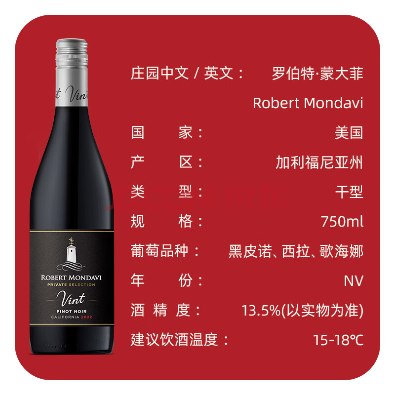 商品相册:蒙大菲(ROBERT MONDAVI)美国蒙大菲私家精选黑皮诺干红葡萄酒 750ml 单瓶 热门商品第