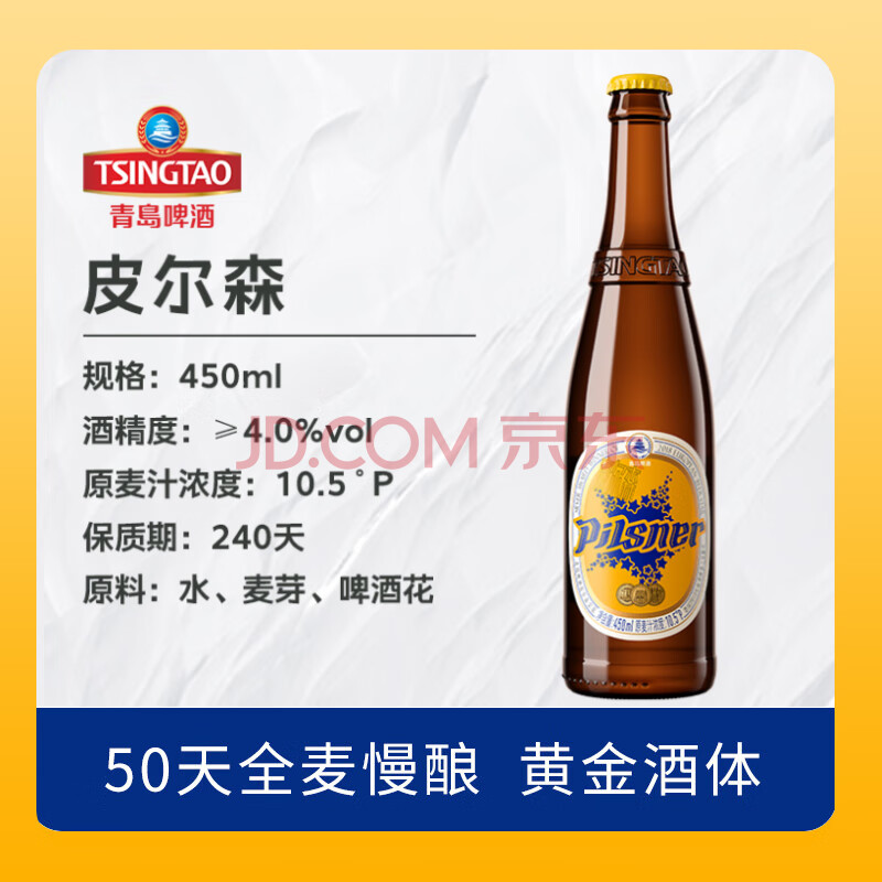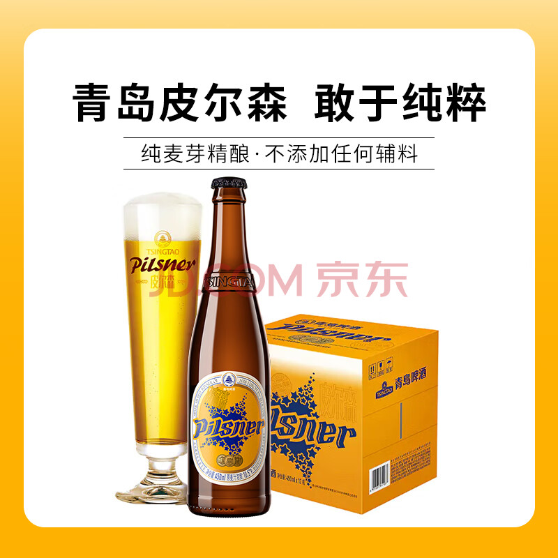 商品相册:青岛啤酒皮尔森拉格精酿啤酒 450ml*12瓶 玻璃瓶整箱装 过年京东自营第