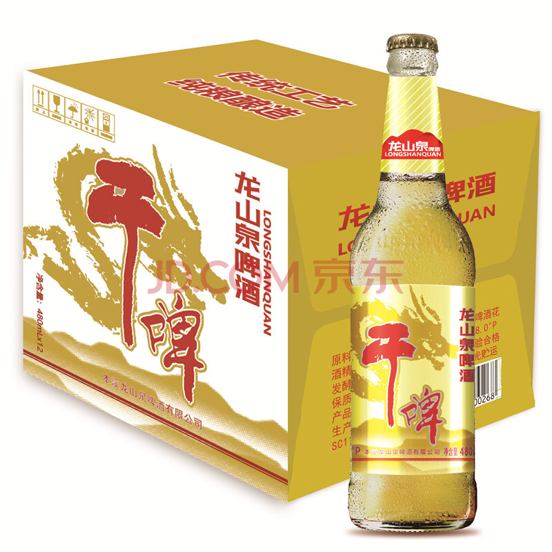 商品相册:龙山泉 啤酒龙山泉干啤瓶装 480mLx12本溪特产第