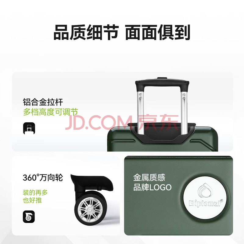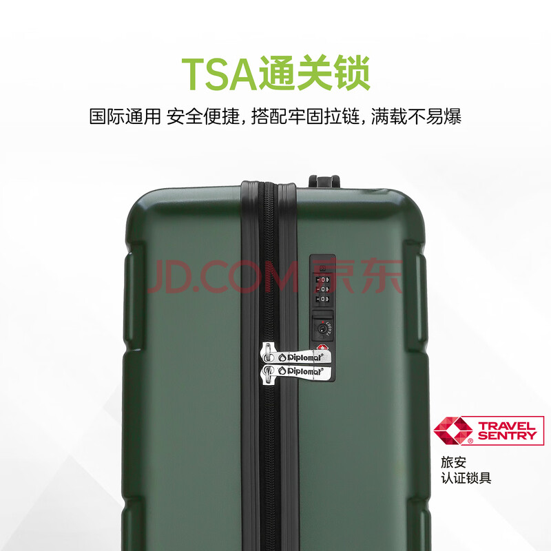 商品相册:Diplomat外交官商务万向轮拉杆箱旅行箱TSA密码行李箱TC-690墨绿色20英寸第
