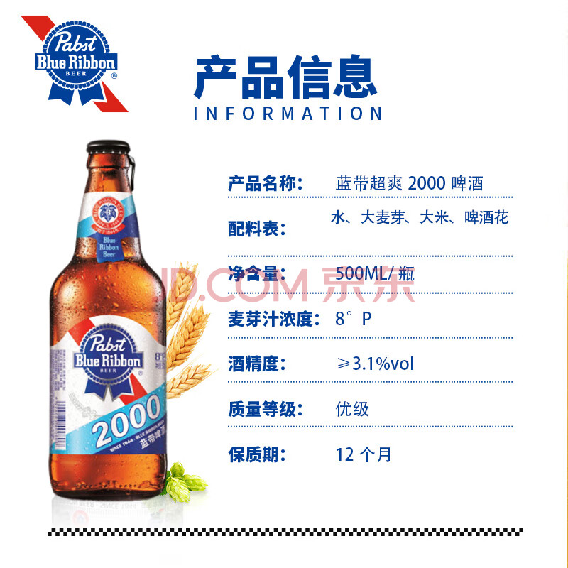商品相册:蓝带超爽2000 黄啤酒 500ml*12瓶 整箱装 蓝带啤酒第