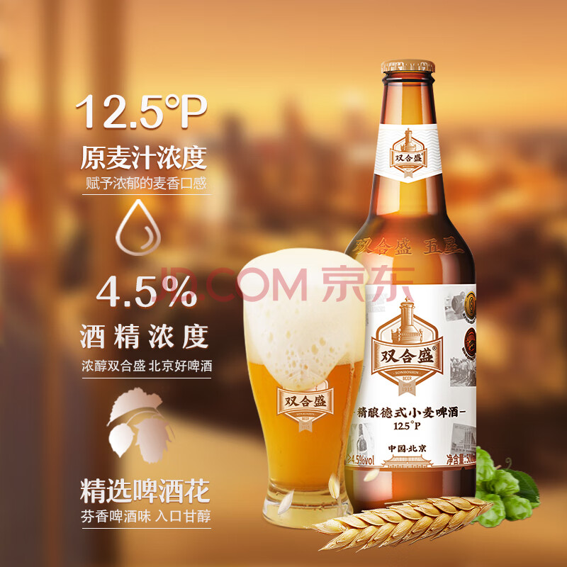 商品相册:双合盛德式小麦精酿啤酒百年老字号全麦白啤500ml*12瓶装整箱装踏春送礼第