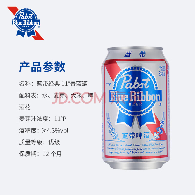商品相册:蓝带(Blue Ribbon)普啤 11度330ml*24听整箱装精酿鲜啤酒第