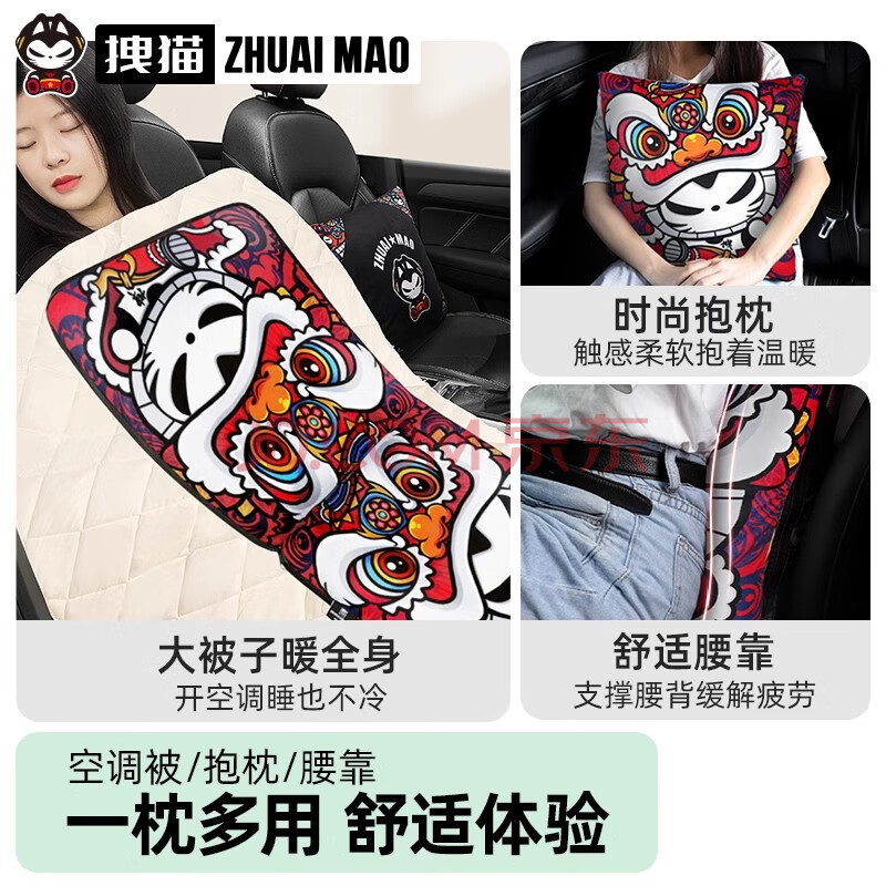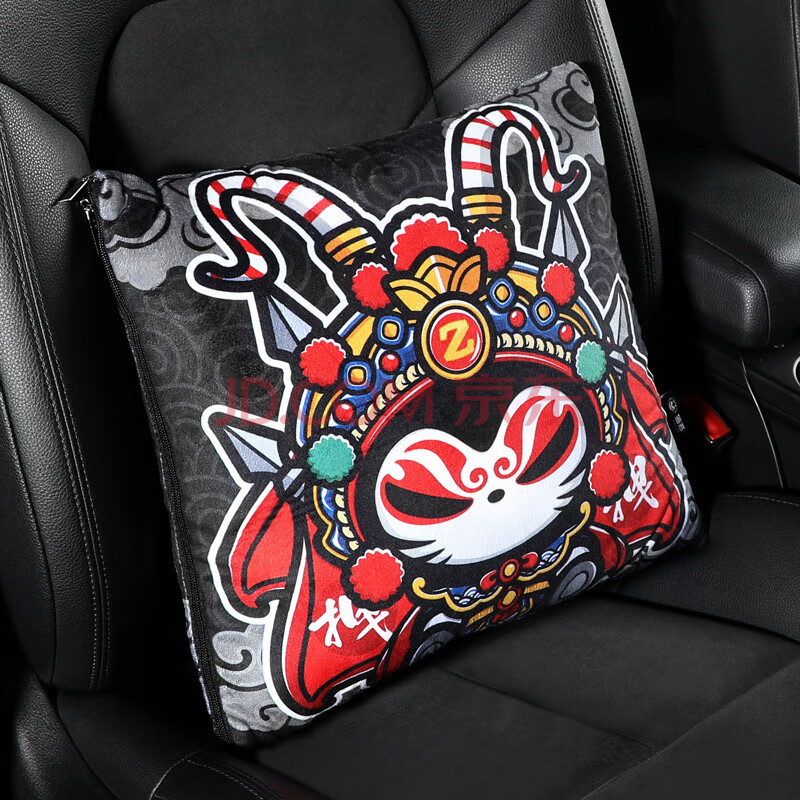 商品相册:拽猫国潮风汽车抱枕被子两用二合一车载睡觉神器加厚冬天车内腰靠京剧第