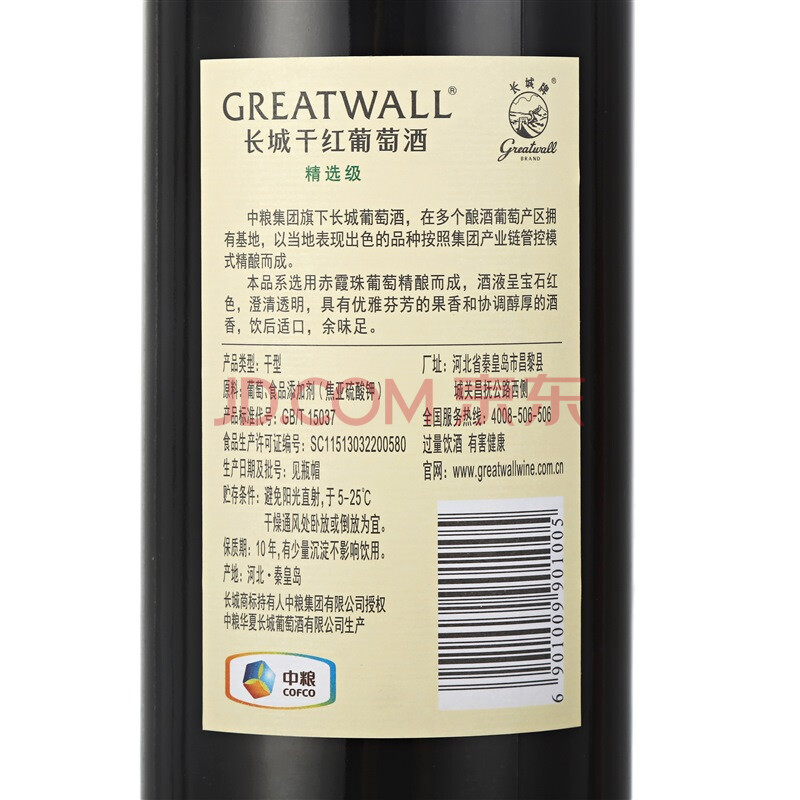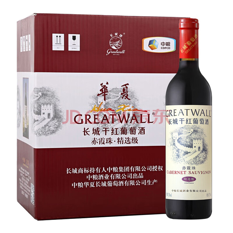 商品相册:长城华夏葡园精选赤霞珠干红葡萄酒750ml*6瓶整箱装红酒第