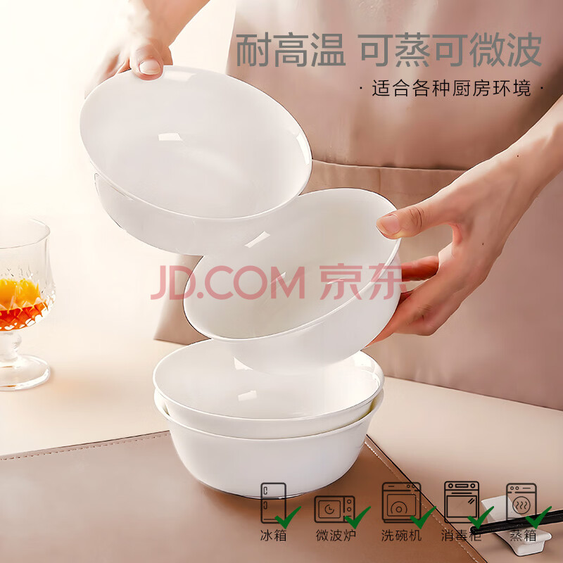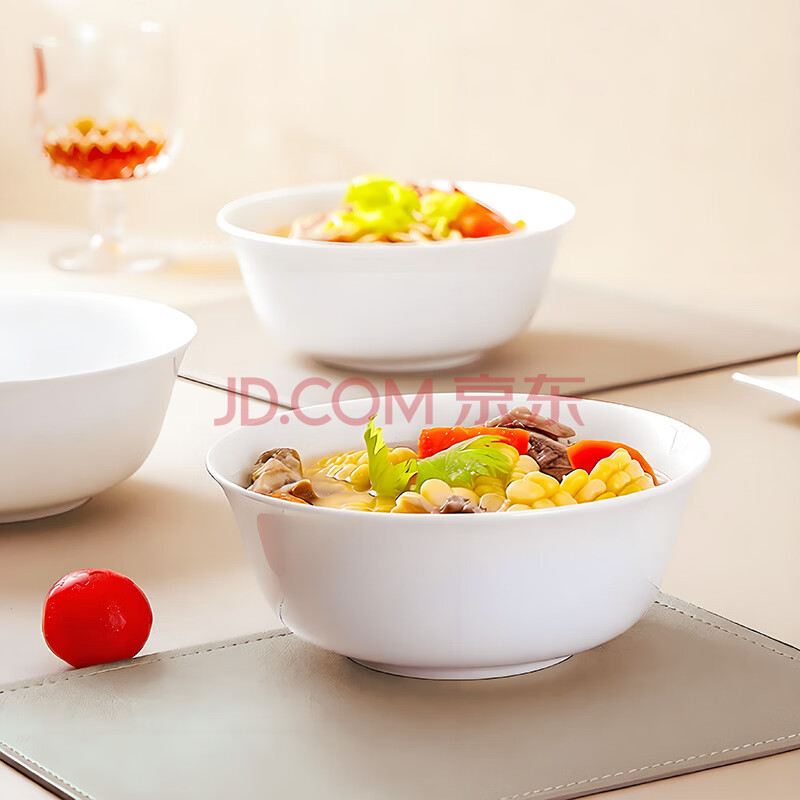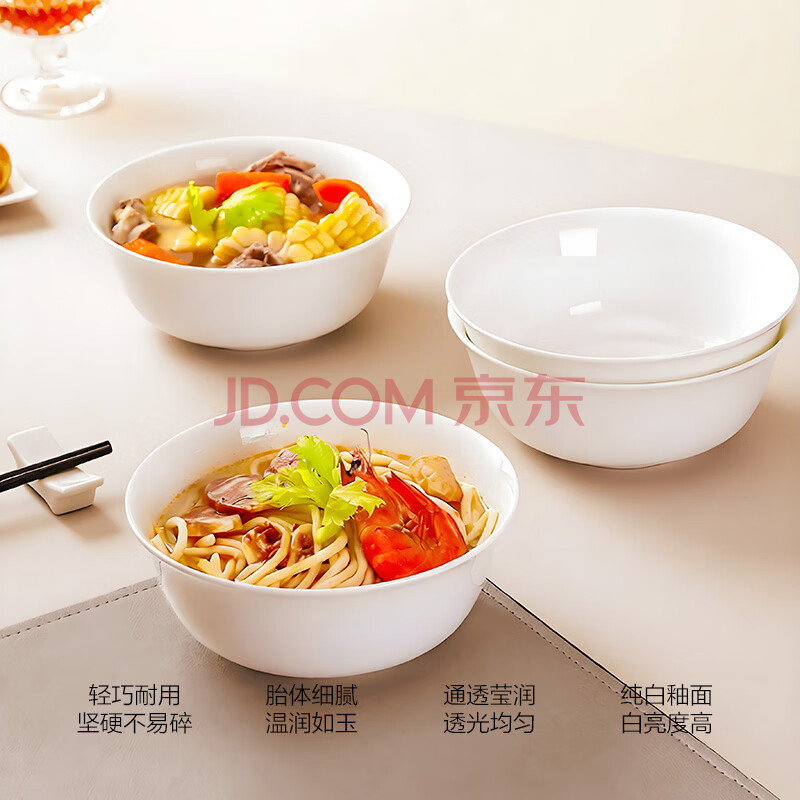 商品相册:斯凯绨(Sky Top)陶瓷面碗骨瓷汤碗米饭碗家用餐具纯白6英寸4件套装第