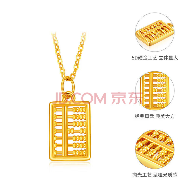 商品相册:梦金园黄金吊坠足金如意算盘吊坠5D硬金算盘挂坠转运珠第