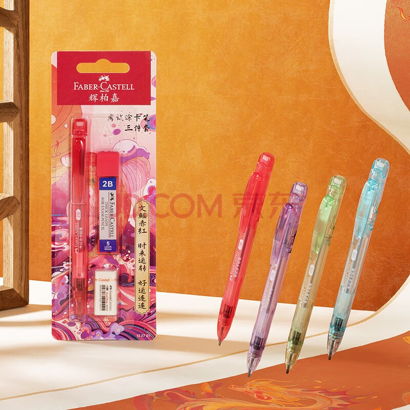 商品相册:辉柏嘉(Faber-castell)文具铅笔 涂卡笔 考试铅笔 考试套装 3件套 吸塑装 红色山海经联名132701第