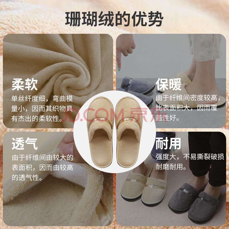 商品相册:班哲尼 一次性拖鞋待客地板拖鞋 男女加厚旅行出差酒店宾馆家用美容院防滑亚麻珊瑚绒棉布拖鞋 混装6双第