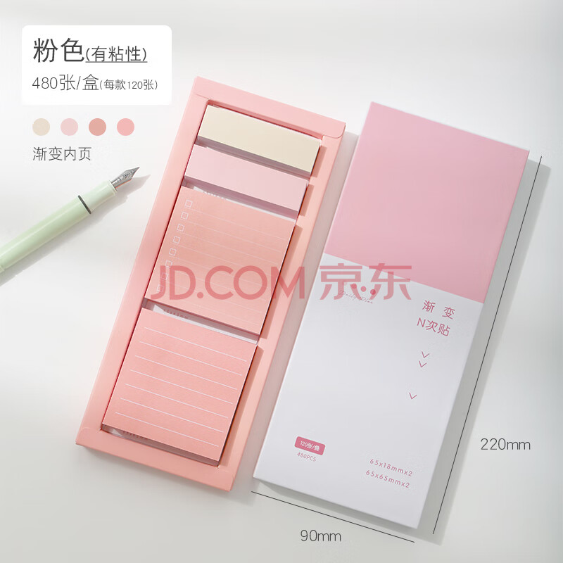 商品相册:三年二班480张可爱渐变彩色大小条组合便利贴套装 学生文具强粘性N次贴加厚便签纸便签贴开学必备小礼物 粉色第