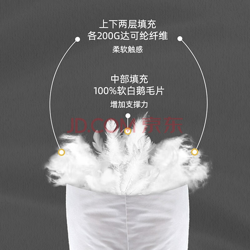 商品相册:斯诺曼五星级酒店柔软白鹅毛枕芯抑菌护颈枕纯棉羽毛枕头74*48cm充1150g第1张/共3