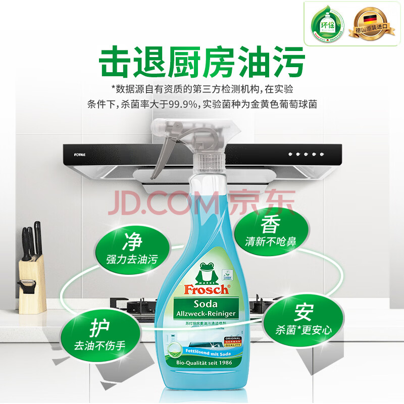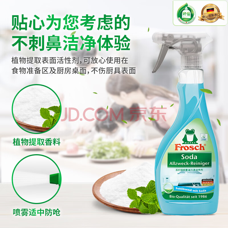 商品相册:Frosch苏打厨房重油污清洁喷剂500ml 高效去污 烤箱清洗 德国原装进口第