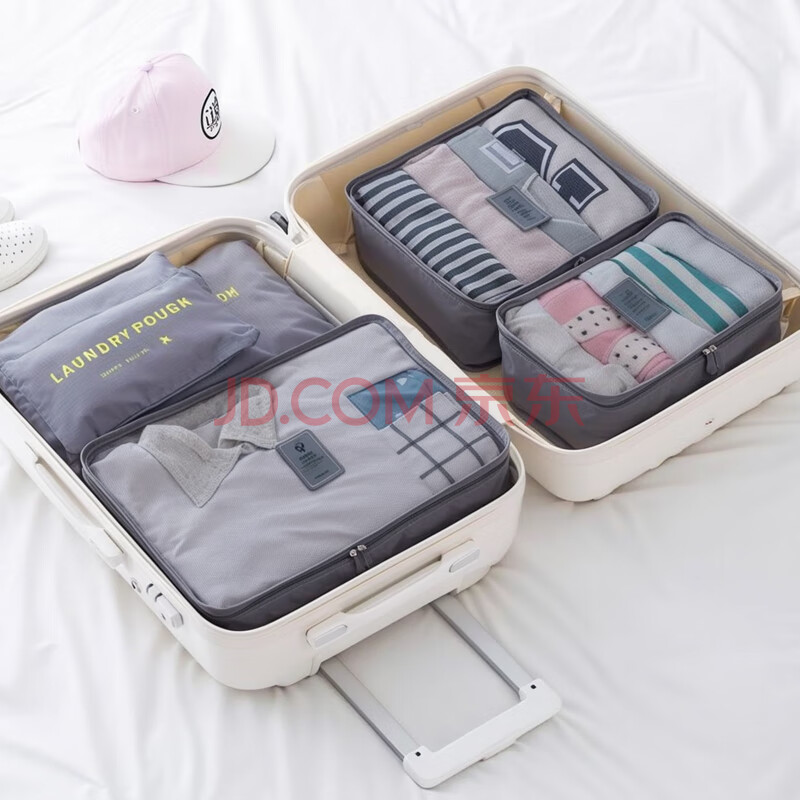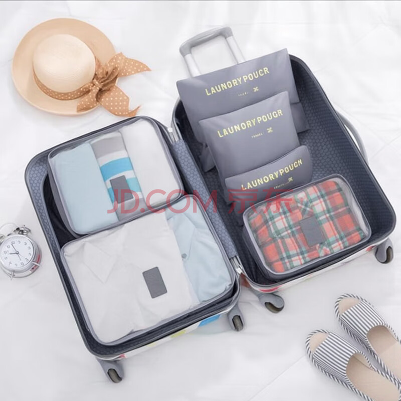 商品相册:欣沁 洗漱收纳套装洗漱收纳袋李箱衣物整理袋收纳包6件套装 灰色第