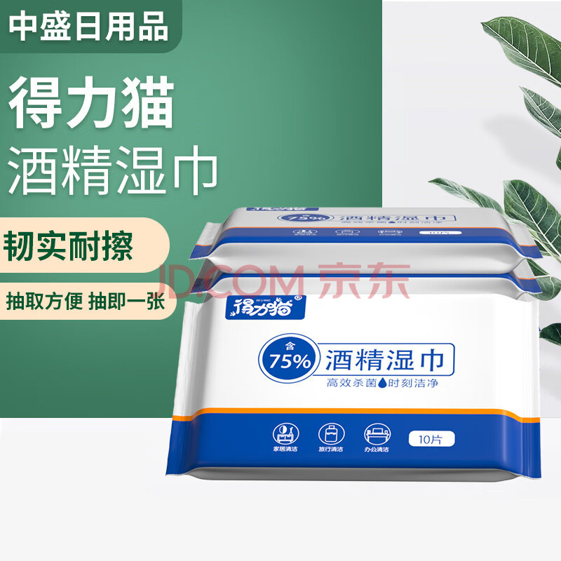商品相册:得力猫 75%酒精湿巾 卫生清洁湿纸巾 10片/包 100包/箱装第