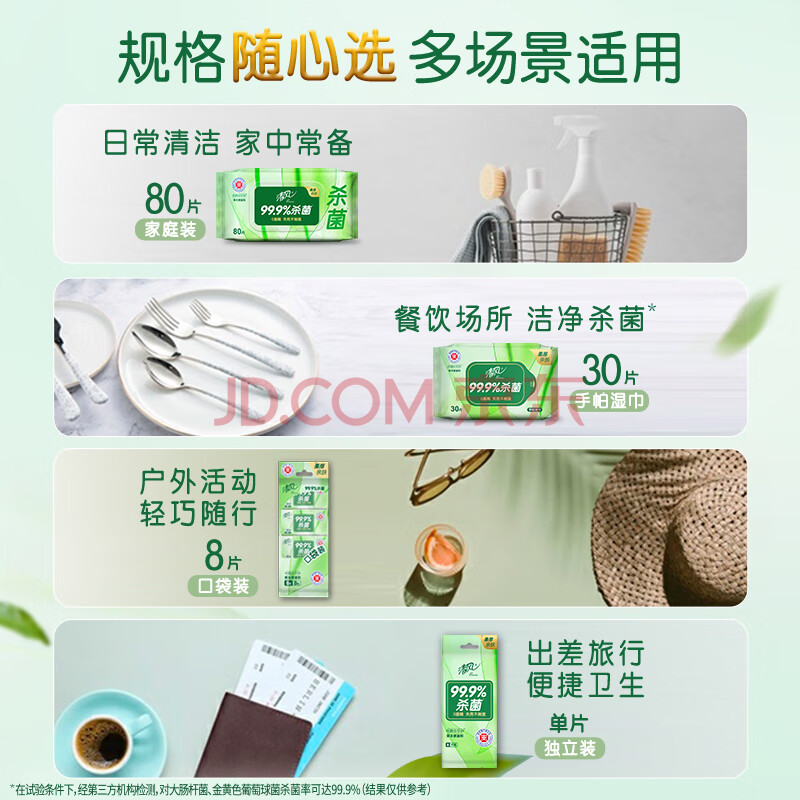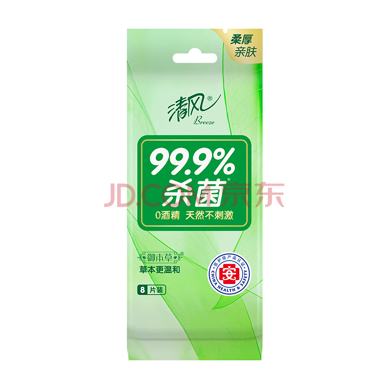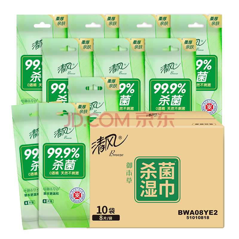 商品相册:清风杀菌湿巾8片*10包单片独立装 杀菌99.9% 小包便携第