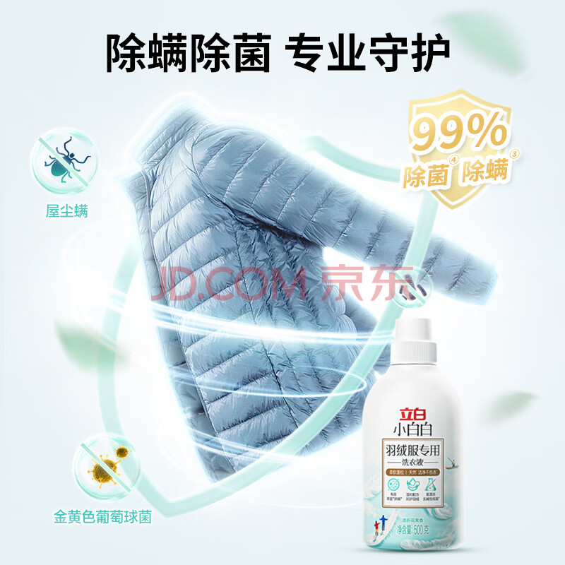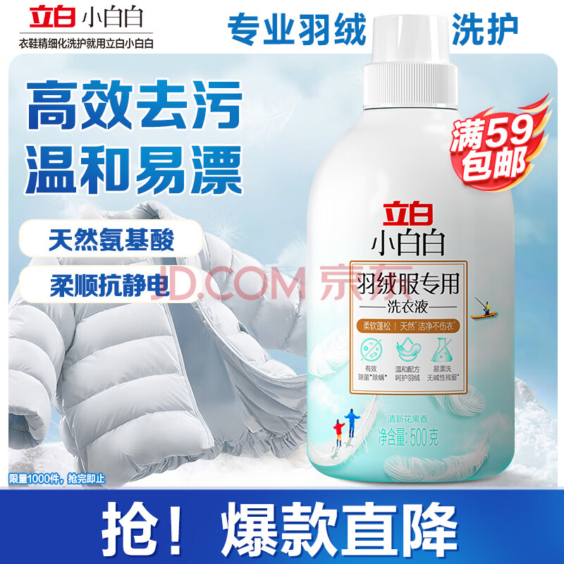 商品相册:立白 小白白羽绒服专用洗衣液 1斤 柔软蓬松 去污护绒 机洗不伤羽绒第