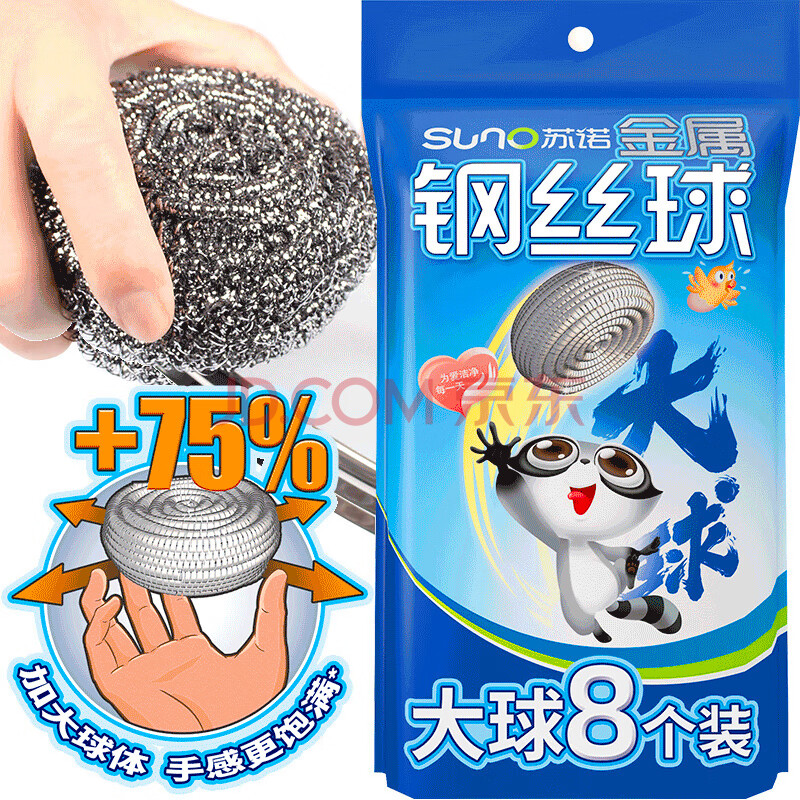 商品相册:苏诺 钢丝球刷子厨房洗碗刷锅清洁球410不锈钢不易掉屑大号8只装第